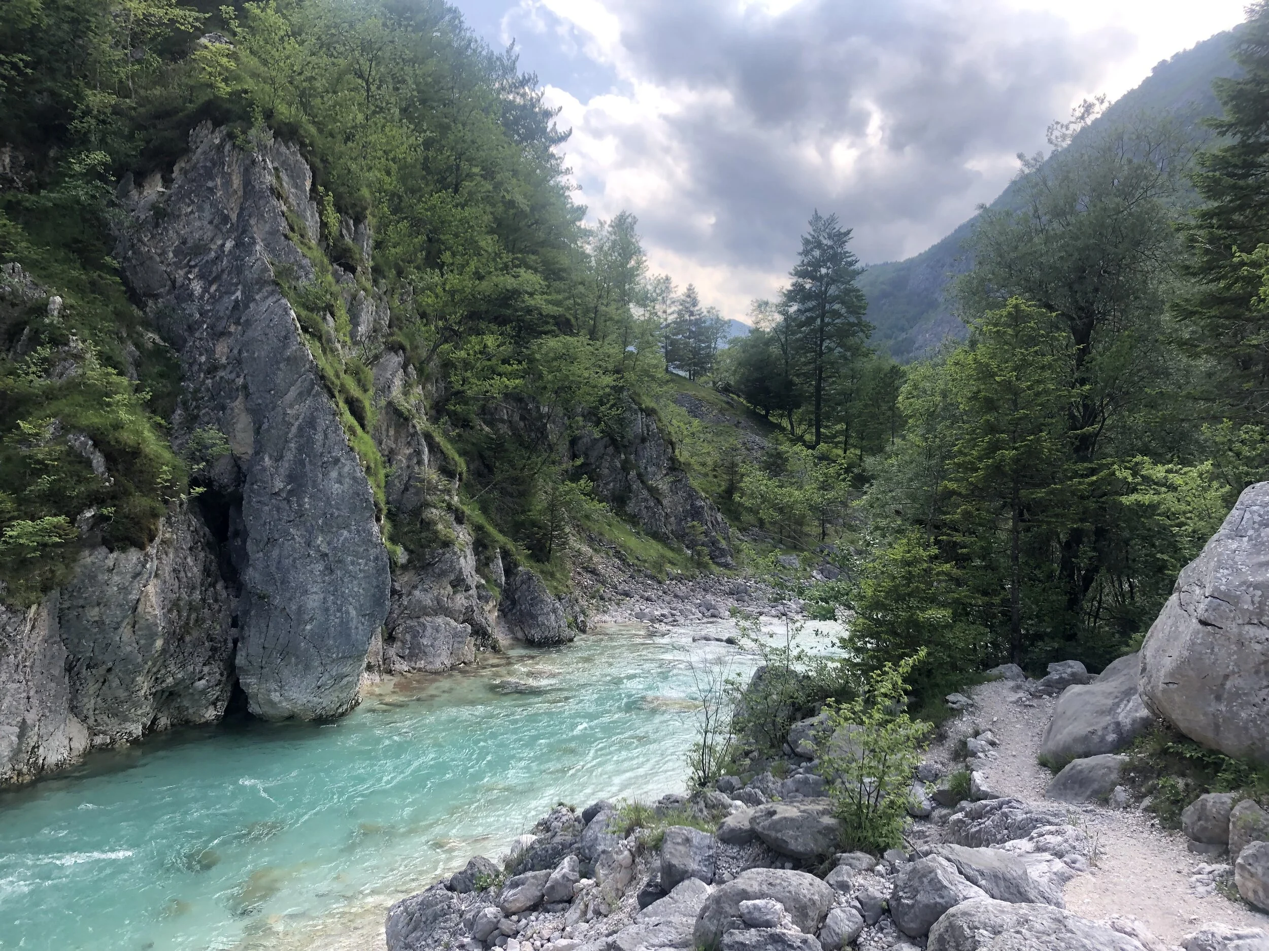 there is a trail that follows along side the soça river, part of the much larger aple adria trail stretching 720 km from austria to the adriatic sea. the slovenian section of this trail snakes through the soca valley, passing by mountains, forest & some interesting relics of world war One.