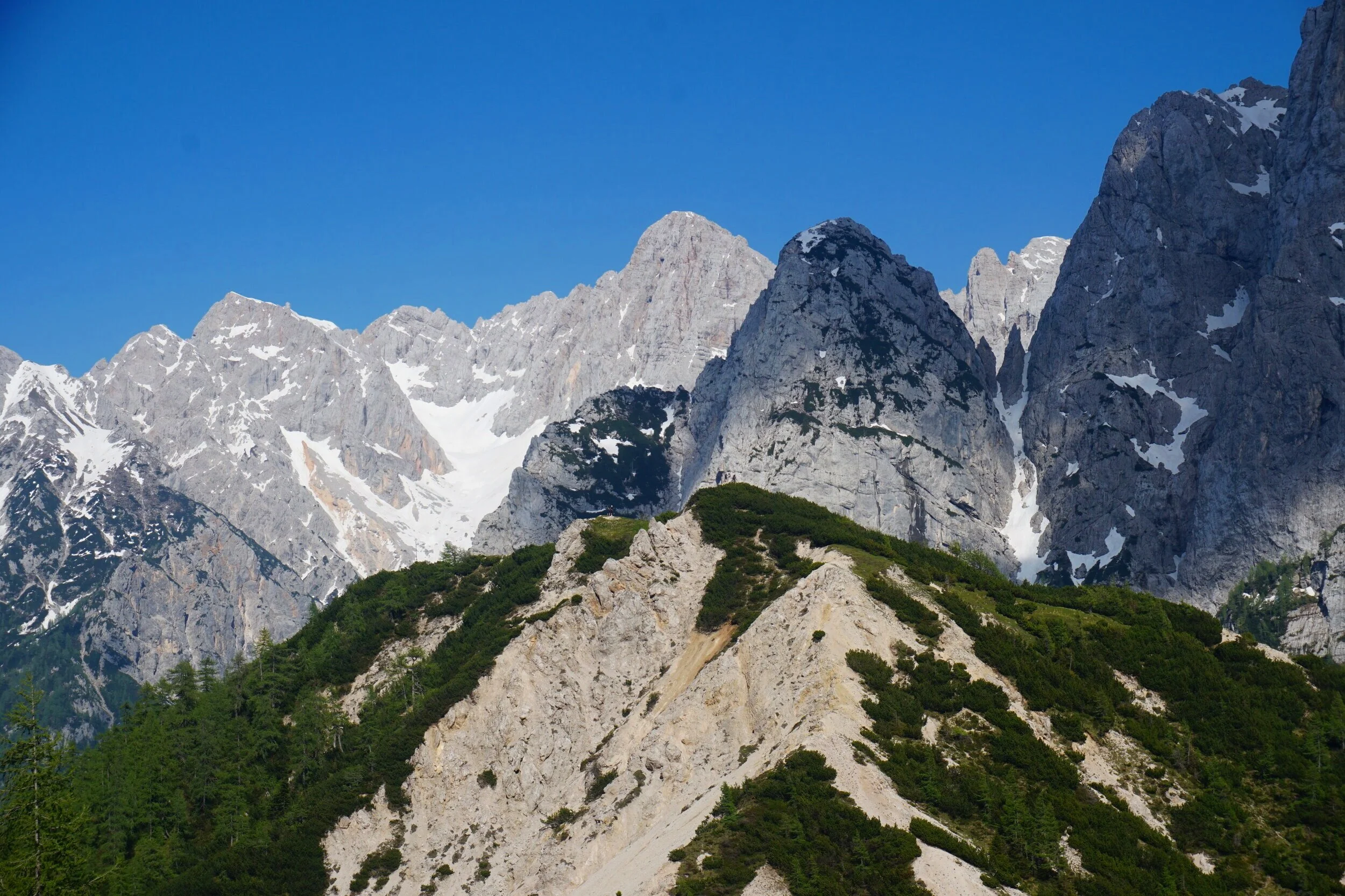Since arriving in Slovenia several people had warned me about residual snow in the mountains, all referencing the same recent accidents that resulted in injury and one death. Everyone said to be careful and take the snow seriously. Since I was hiking solo, I heeded their advice.